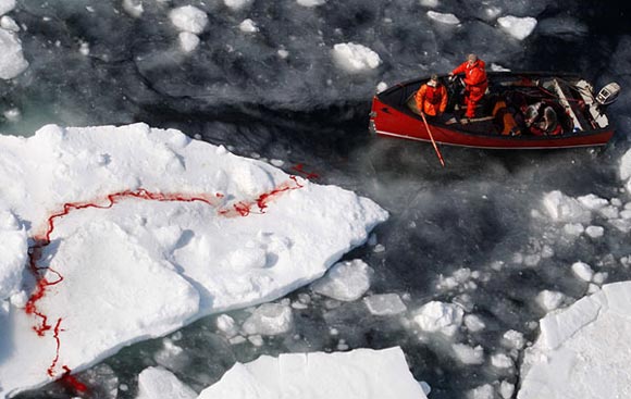 自然及環(huán)保類新聞單幅銀獎照片:《浮冰上的血跡》