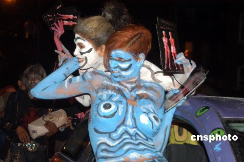 十月三十一日,一年一度的紐約萬圣節(jié)游行在曼哈頓舉行。中新社發(fā) 譚宏偉 攝