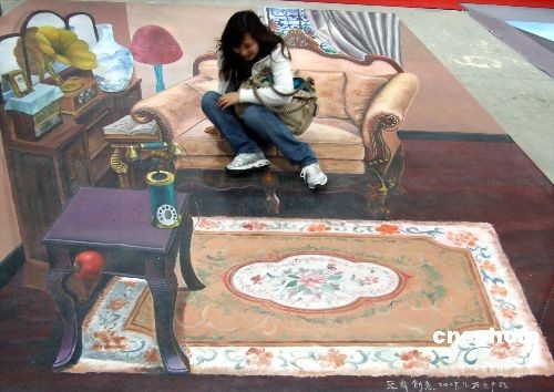 3月19日,第33屆禮品工藝品暨家居用品展正在上海舉行。展會中,幾幅立體畫因其獨特的三維立體效果,幾乎能“以假亂真”,讓人產(chǎn)生視覺錯覺,吸引了不少參觀者。中新社發(fā) 井韋 攝