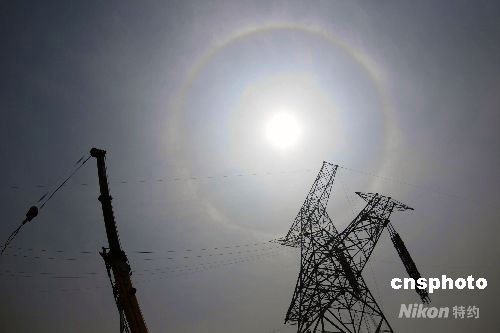 圖:河南孟州上空出現(xiàn)日暈奇觀