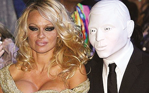 圖為“假面人”陪伴在女明星帕米拉·安德森身邊。