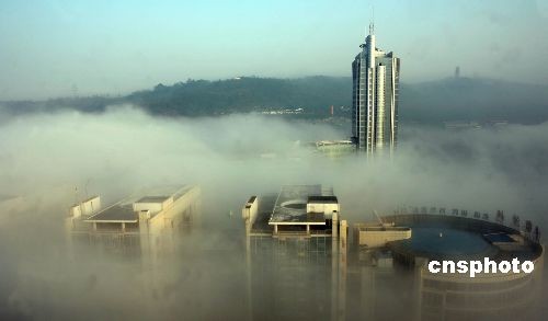 11月7日,重慶大霧,山城煙蒸霧繚,恍臨仙境。11月以來,重慶連續(xù)降雨數(shù)日,當日一早天氣放晴,受冷空氣影響,山城出現(xiàn)大霧,高樓大廈云中林立,如登廣寒。中新社發(fā) 秦楓 攝 < 2008-11-07 18:45:20 >