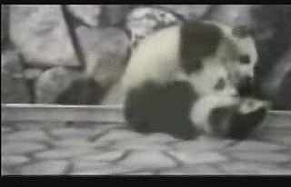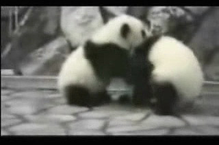 兩只大熊貓打得不依不饒,看上去它們沒(méi)有明確的攻擊部位,打斗中沒(méi)有一聲吼叫,沒(méi)有咬得頭破血流,讓人弄不清是假打還是真打。