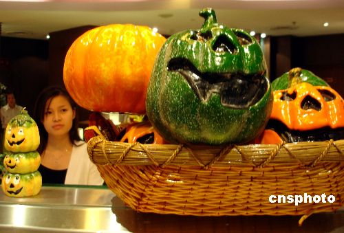 10月20日,顧客在一家商店內(nèi)欣賞鬼臉造型的南瓜飾品。隨著西方萬(wàn)圣節(jié)的臨近,蘇州一些精明的商家借“鬼節(jié)”生財(cái),濃濃的萬(wàn)圣節(jié)氣氛吸引了眾多顧客。據(jù)悉,10月31日是西方的萬(wàn)圣節(jié),萬(wàn)圣節(jié)也叫“鬼節(jié)”,近年來在蘇州正慢慢受到關(guān)注。中新社發(fā) 王建康 攝