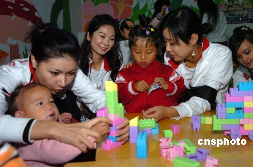 10月24日,“璽萌杯”第57屆世界小姐總決賽中國(guó)賽區(qū)參賽佳麗,來到北京豐臺(tái)區(qū)兒童福利院,把她們的笑容和愛心帶給這里的孩子們。大賽贊助商“璽萌”公司向福利院捐贈(zèng)了十萬元資金。中新社發(fā) 樊建恩 攝