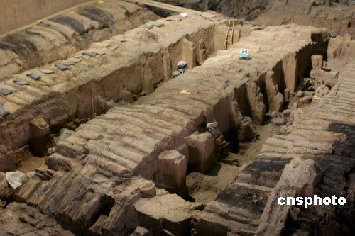 10月24日獲悉,已開放13年的西安兵馬俑二號(hào)坑陳列廳將于2007年11月1日起封館,對(duì)展廳屋頂漏雨情況進(jìn)行全面處理。秦始皇兵馬俑二號(hào)坑總面積約8000平方米,是3個(gè)坑中最為壯觀的軍陣,目前,二號(hào)坑中發(fā)現(xiàn)的文物2000件,其中將軍俑、鞍馬俑、跪姿射俑為首次發(fā)現(xiàn)。二號(hào)坑陳列廳于1988年動(dòng)工修建,1994年建成對(duì)外開放。此次修館是對(duì)二號(hào)坑屋頂進(jìn)行翻修,將原屋頂揭掉重新建造屋頂。二號(hào)坑從11月1日起封閉,封館之后文物將陸續(xù)被轉(zhuǎn)移到文物展覽廳等地方。在文物搬離之后,為保證坑內(nèi)還未發(fā)掘文物的安全,二號(hào)坑將全部回填、嚴(yán)密覆蓋。這一工程大約為期5個(gè)月,預(yù)計(jì)到2008年4月20日,二號(hào)坑屋頂將處理完畢,“五一”之前再向游客開放。中新社發(fā) 程千俊 攝