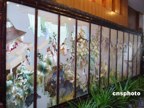 11月2日,巨型蘇繡《群仙祝壽圖》。近日,一幅長(zhǎng)12米、寬5米的巨型蘇繡《群仙祝壽圖》亮相江蘇蘇州一家商場(chǎng),該作品由12位繡娘花費(fèi)近半年時(shí)間繡制完成,標(biāo)價(jià)98萬(wàn)元人民幣。中新社發(fā) 李俊鋒 攝