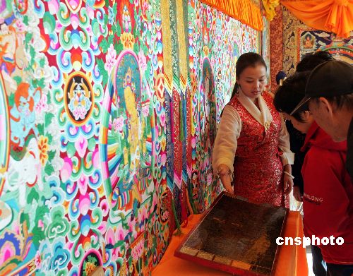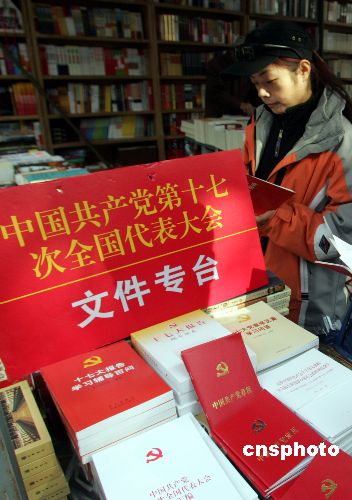 十一月二日,一年一度的北京秋季書市拉開帷幕。來自中國書店等五百余家參展商為廣大讀者奉獻(xiàn)上了二十余萬種圖書“大餐”。中國青海熱貢藝術(shù)展也首次亮相書市。在書市的首日,有關(guān)十七大的圖書也成為熱銷圖書之一。中新社發(fā) 任海霞 攝