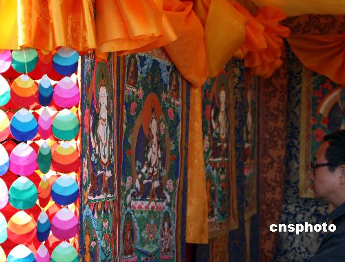 11月5日,中國(guó)青海熱貢藝術(shù)展會(huì)揭幕儀式在北京舉行。青海省黃南藏族自治州的“中國(guó)青海熱貢藝術(shù)展”本月2日首度亮相北京秋季書市后,神秘而璀璨的青海熱貢文化藝術(shù)瑰寶大放異彩,成為北京書市前所未有的一大亮點(diǎn),為本屆書市帶來一股具有濃郁青海文化特色的異域之風(fēng),使京城市民有緣與這一中國(guó)首批非物質(zhì)文化遺產(chǎn)零距離接觸。中新社發(fā) 任海霞 攝