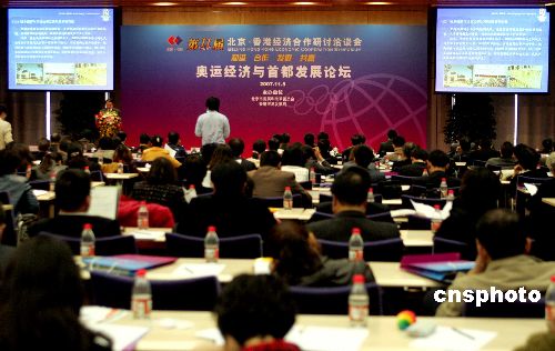 11月5日,第11屆北京·香港經(jīng)濟合作研討洽談會之“奧運經(jīng)濟與首都發(fā)展”論壇在北京舉行,兩地與會人員共同探討和北京奧運有關(guān)的話題。中新社發(fā) 張宇 攝