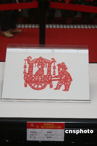 11月8日,第八屆中國藝術(shù)節(jié)上,以國風歸來為主題的第二屆全國剪紙藝術(shù)展在武漢市武昌東湖畔湖北藝術(shù)館開展。胡錦濤總書記剪紙《回娘家》亮相藝術(shù)展上。
