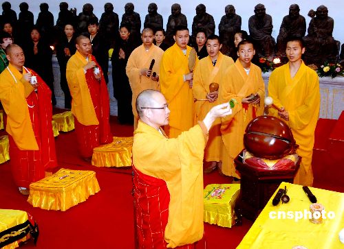 十一月十日,福州開(kāi)元寺隆重舉行外山門(mén)落成、二十八座佛塔安座及羅漢堂壹佰零捌尊羅漢圣像開(kāi)光典禮。福建省佛教協(xié)會(huì)副會(huì)長(zhǎng)兼秘書(shū)長(zhǎng)、福州開(kāi)元寺方丈本性法師率眾僧及信眾近千人參加該典禮。福州開(kāi)元寺是福州現(xiàn)存最古老的寺院,始建于梁太清三年,距今近一千五百年歷史。中新社發(fā) 劉可耕 攝