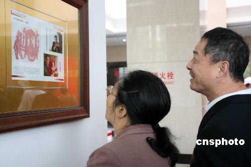 11月8日,觀眾正在欣賞胡錦濤總書記的剪紙作品《回娘家》。第二屆全國剪紙藝術(shù)展在武漢湖北藝術(shù)館展出,胡錦濤總書記的剪紙作品《回娘家》亮相藝術(shù)展。來自全國各地的觀眾一睹《回娘家》的風(fēng)采,感受黨和國家領(lǐng)導(dǎo)人心系人民群眾,關(guān)心非物質(zhì)文化遺產(chǎn)傳統(tǒng)藝術(shù)的濃濃情懷。中新社發(fā) 李長林 攝