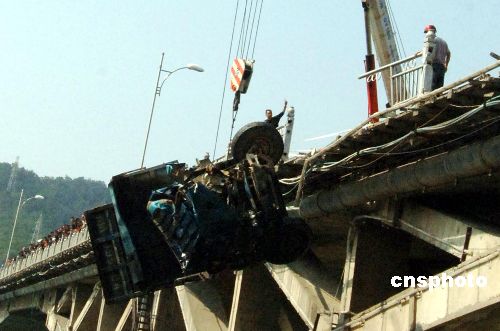 十一月十四日,營救人員啟動大型吊車正在將一輛墜入閩江的車輛打撈上岸。當(dāng)天凌晨四時許,一輛從福州建新鎮(zhèn)開往鼓樓區(qū)方向的微型小貨車,行駛至洪山橋路面時與另一輛從相反方向駛來的運沙車相撞后墜入閩江中,至少造成兩名司機死亡。福州市公安、消防等部門緊急出動,組織營救,啟動大型吊車先后將兩輛墜江車輛和一名遇難司機尸體打撈上岸。 中新社發(fā) 劉可耕 攝