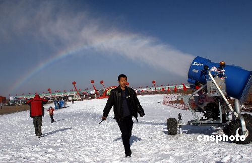 十一月十七日,新疆烏魯木齊某滑雪場(chǎng)工作人員正在操作造雪機(jī),對(duì)即將投入使用的雪道進(jìn)行人工造雪。當(dāng)天,2007新疆冬季冰雪旅游啟動(dòng)儀式在該滑雪場(chǎng)舉行。新疆冬季漫長(zhǎng),冰雪資源極為豐富,截至目前已建成二百一十多家滑雪場(chǎng)和冰雪娛樂(lè)點(diǎn)。中新社發(fā) 劉新 攝