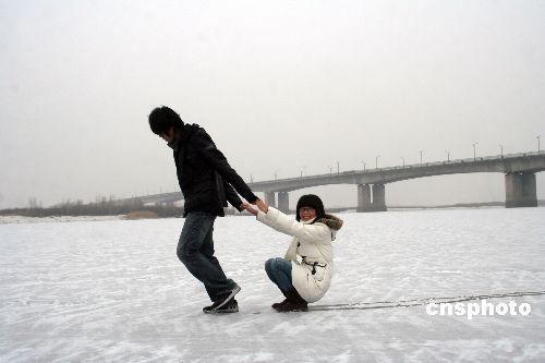 11月19日零時,黑龍江哈爾濱氣溫驟降,松花江段全面封江。當(dāng)日13時,當(dāng)?shù)赜瓉淼谝粓鲅V行律绨l(fā) 姚庭山 攝
