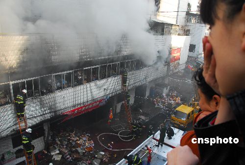 11月20日上午10時許,安徽蚌埠市區(qū)最大的小商品批發(fā)市場——太平街批發(fā)市場2號營業(yè)大廳發(fā)生火災(zāi),一層大廳2000平方米的近百攤位全部陷入火海中。一個多小時后,火勢又蔓延到二樓倉儲區(qū)。截至下午4時,余火仍在撲救中。目前沒有人員傷亡報告,經(jīng)營戶貨品財物損失很大。 中新社發(fā) 安徽張建平 攝