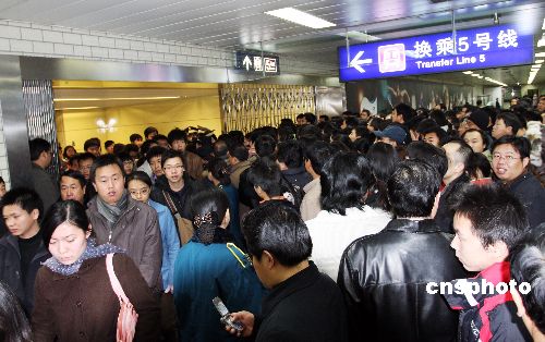 11月26日,早班高峰期時段北京地鐵5號線出現(xiàn)技術(shù)故障引發(fā)東單中轉(zhuǎn)站人群擁堵現(xiàn)象,同時也給地鐵1號線帶來一定的壓力。北京地鐵5號線是北京市軌道交通路網(wǎng)中一條重要的南北干線,南起豐臺區(qū)宋家莊,北至昌平區(qū)天通苑,線路全長27.6公里。中新社發(fā) 鄭雄增 攝