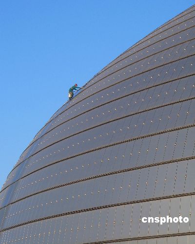 12月14日,北京國家大劇院內(nèi)外呈現(xiàn)一片繁忙景象,有關(guān)工作人員開始全面對大劇院進行清洗、保潔,以嶄新的面貌迎接12月22日國家大劇院首個演出季的開幕盛典。中新社發(fā) 玉龍 攝