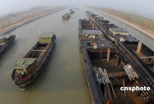 12月22日,上百艘船只開始過閘。當(dāng)日,被譽(yù)為“江北第一閘”的京杭運(yùn)河山東臺(tái)兒莊船閘汽笛爭鳴,百舸爭渡上演“過閘大戲”。由于連日濃霧,能見度不足20米,萬年船閘和臺(tái)兒莊船閘全線停止放船,上百艘船只滯留在航段內(nèi)。中新社發(fā) 高啟民 攝