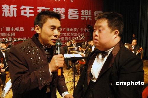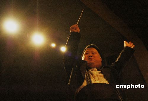 2008元旦之夜,《讓世界充滿愛》——“奇才指揮家”舟舟傾情指揮的大型新年交響音樂會(huì)在安徽巢湖舉行。委婉動(dòng)人的音樂令在場(chǎng)上千人領(lǐng)略了舟舟的指揮風(fēng)采,感受了交響樂的魅力,給步入新年的巢湖市民帶來了無數(shù)激情、夢(mèng)想與歡樂。中新社發(fā) 徐振華 攝