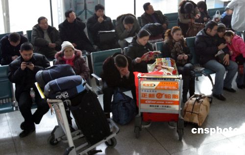 1月2日上午,烏魯木齊國(guó)際機(jī)場(chǎng)出現(xiàn)大霧天氣,致使部分航班延誤,數(shù)百名乘客滯留機(jī)場(chǎng)。記者從機(jī)場(chǎng)問訊處獲悉,因?yàn)豸斈君R國(guó)際機(jī)場(chǎng)被大霧籠罩,能見度不符合飛機(jī)降落標(biāo)準(zhǔn),成都—烏魯木齊、北京—烏魯木齊等國(guó)內(nèi)航班被迫備降敦煌機(jī)場(chǎng),導(dǎo)致從烏魯木齊飛往成都和北京等地的乘客滯留機(jī)場(chǎng)。據(jù)了解,烏魯木齊到庫(kù)爾勒、伊寧等地的疆內(nèi)航班沒有受到影響,仍可正常起飛。截至發(fā)稿時(shí),機(jī)場(chǎng)大霧仍未退去,乘客們?nèi)栽诘却鞖夂棉D(zhuǎn)。中新社發(fā) 李雄心 攝
