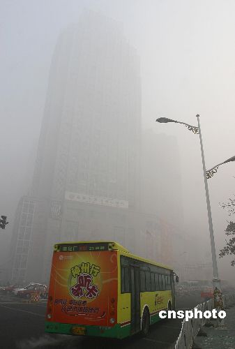 圖:烏魯木齊空氣污染嚴(yán)重 百米高樓淹沒(méi)霧中