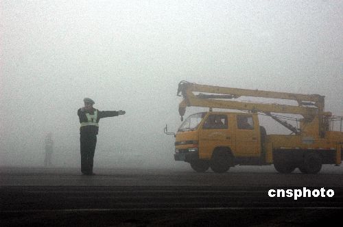 2008年1月7日,一場(chǎng)大霧降臨港城日照,許多路段能見度僅達(dá)三至五米。日照市交警直屬大隊(duì)啟動(dòng)惡劣天氣緊急預(yù)案,在地勢(shì)低洼、靠近河道等重點(diǎn)路段部署大量警力,并啟用聲光等多媒體設(shè)備,疏導(dǎo)車輛和人流,確保交通安全。中新社發(fā) 揚(yáng)文 攝