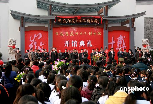 2008年1月8日,安徽徽州文化博物館落成開館。該館館藏的近10萬件(冊)歷史藏品全面、系統(tǒng)、完整地展示了徽州文化。博物館坐落在黃山市,占地157畝,建筑面積14000平方米,總投資7000萬元,是集徽州文化展示、收藏、研究、培訓、非物質(zhì)文化遺產(chǎn)演繹、交流旅游觀光為一體的國家大型地方綜合性博物館;罩菸幕┪镳^是以徽州文化為基本內(nèi)容、徽州地理山水為背景、徽派建筑風格為基調(diào)的一組多功能徽派風景園林建筑,由陳列區(qū)、收藏區(qū)、文化產(chǎn)業(yè)區(qū)等組成。中新社發(fā) 方也廣德 攝