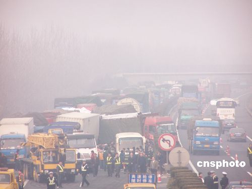 1月8日8時許,由于大霧的原因,合徐高速33公里至37公里段發(fā)生一起特大交通事故,一百余輛車連綿相撞,事故至少造成7人死亡12人受傷。事發(fā)后交警、消防、衛(wèi)生等部門迅速趕至現(xiàn)場處置,到晚上7時許,該路段才陸續(xù)恢復通行。中新社發(fā) 朱小輝 攝