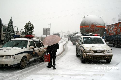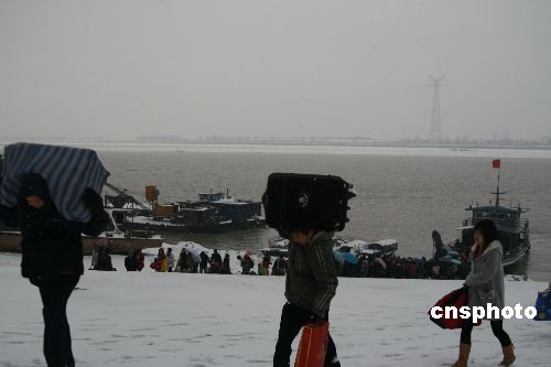 1月15日,贛北遭遇10年一遇的暴雪天氣,江西九江市及8個縣(市)發(fā)布暴雪藍(lán)色預(yù)警及道路結(jié)冰黃色預(yù)警信號,因路面結(jié)冰,九江長江大橋、鄱陽湖大橋及所有高速公路全部封閉,交通安全及通行受到嚴(yán)重影響。中新社發(fā) 張 俊 攝