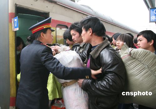1月23日起,為期四十天、世界上規(guī)模最大的人口遷移——中國(guó)春運(yùn)即將登場(chǎng)。據(jù)知,南昌鐵路局2008年春運(yùn)將運(yùn)送1186萬游子歸鄉(xiāng),比2007年增加108萬人。中新社發(fā) 吳慶才 攝