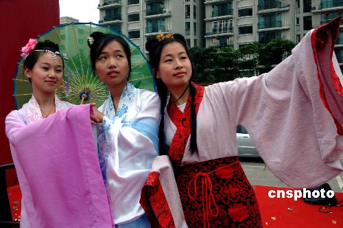 一月十八日,福州漢服愛好者正在表演情景劇。當(dāng)日,福州漢唐文化藝術(shù)中心隆重開業(yè),熱衷追逐古典文化的福州漢服天下工作人員上臺表演助興。中新社發(fā) 王東明 攝