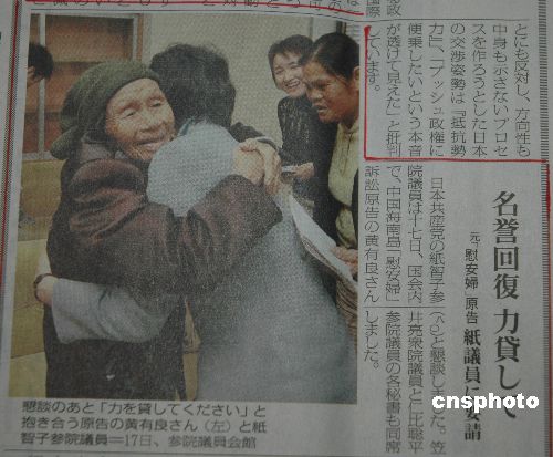 八十歲高齡的海南“慰安婦”受害者原告代表黃有良老人一月十九日深夜從東京返回海口。老人披露,二審?fù)彆r,法官除詳細(xì)地了解老人受凌辱的事實經(jīng)過外,還首次詢問“慰安婦”經(jīng)歷給原告后來六十多年人生帶來的不幸尤其是造成的精神創(chuàng)傷。二00一年七月,黃有良等八名海南“慰安婦”受害幸存者向日本政府提起訴訟,要求日本政府公開道歉還其清白,并給予相應(yīng)賠償。二00六年八月一審敗訴,同年底原告再次上訴。中新社發(fā) 王辛莉 攝