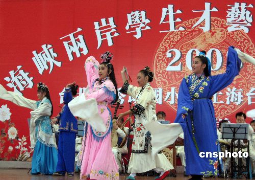 圖為臺北縣秀朗“國小”的學生在表演歌仔戲。