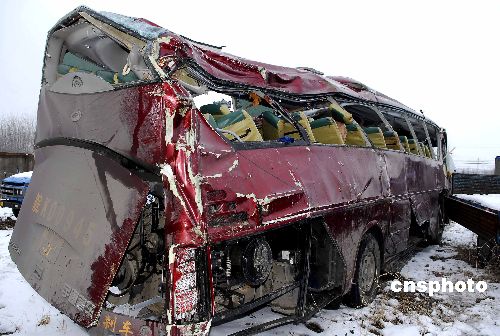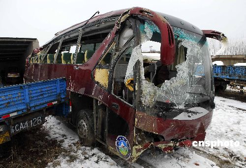 2008年1月20日深夜,一輛從蘇州發(fā)往安徽阜陽的大巴行駛至104國道明光市境內(nèi)時(shí),翻下路邊溝內(nèi),造成7人當(dāng)場死亡。事故發(fā)生后,當(dāng)?shù)亟痪、醫(yī)院等部門火速趕到現(xiàn)場,實(shí)施救援。截至記者發(fā)稿時(shí),已有11人死亡,51人不同程度受傷。傷者正在醫(yī)院接受治療,除了兩名重傷者沒有脫離危險(xiǎn)外,其他傷者暫時(shí)無恙。據(jù)了解,此車核載51人,實(shí)載72人。事故原因具體尚在調(diào)查之中。中新社發(fā) 計(jì)成軍 攝