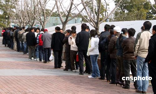 2008年1月23日,因鐵路上海站售票改為提前10天,欲提前11天購票的旅客大量涌向上海南站通宵排隊,人數(shù)足有數(shù)千人。中新社發(fā) 紹常 攝
