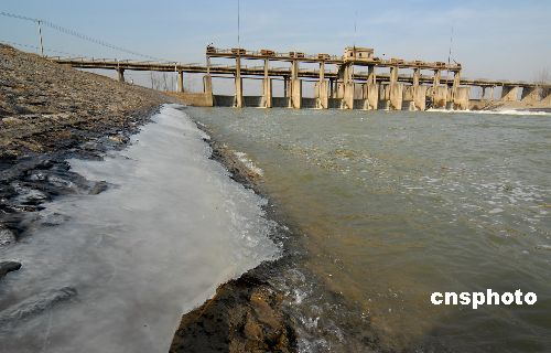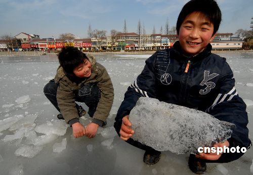 1月24日,京杭運(yùn)河節(jié)制閘堤岸出現(xiàn)冰凍。據(jù)氣象部門披露:自1月20日以來,山東棗莊普降小到中雪,氣溫降到零下4-5℃左右,最低氣溫達(dá)零下8.2℃,京杭運(yùn)河山東臺(tái)兒莊航道、運(yùn)河節(jié)制閘內(nèi)出現(xiàn)多年未有的淌凌和冰凍,最厚冰層接近8厘米。中新社發(fā) 高啟民 攝