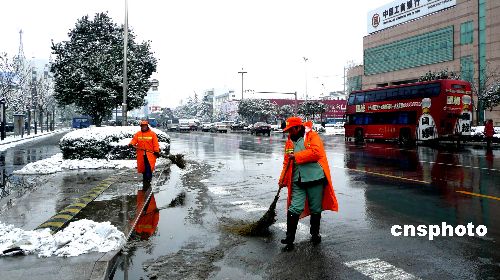1月26日,江蘇揚州干部群眾一起上街清掃路面積雪,開辟出一條條干凈、通暢的道路,保證了市民正常生活出行。據(jù)江蘇省氣象局分析,從1月25日夜到29日,江蘇將出現(xiàn)持續(xù)性降雪天氣,較大降雪出現(xiàn)在27日至28日,氣溫持續(xù)偏低,并會出現(xiàn)冰凍。中新社發(fā) 崔佳明 攝