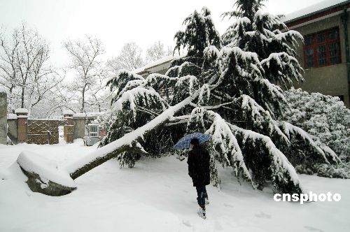 圖:安徽巢湖罕見(jiàn)暴雪壓倒青松