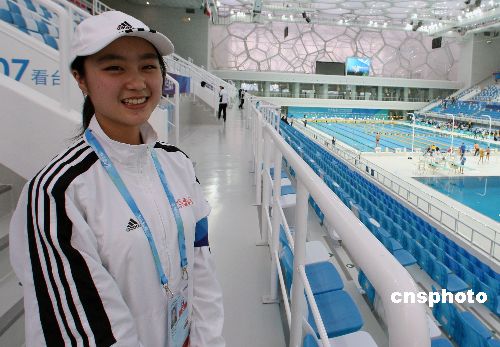1月29日北京天寒地凍,剛剛完工的北京奧運(yùn)會游泳場館——國家游泳館(水立方)內(nèi)溫暖如春,主要由清華大學(xué)學(xué)生組成的數(shù)千名志愿者在靚麗柔美的游泳館“上崗”,迎接1月31日開始的中國游泳公開賽。中新社發(fā) 任晨鳴 攝