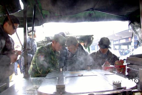 圖:南京軍區(qū)官兵在火車站搭設的“野戰(zhàn)帳篷”