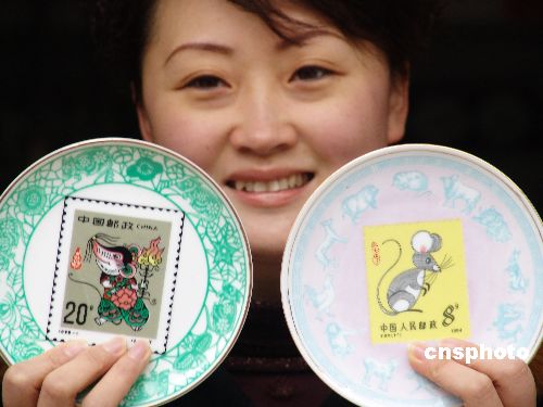 圖:生肖鼠郵票瓷盤(pán)景德鎮(zhèn)上市