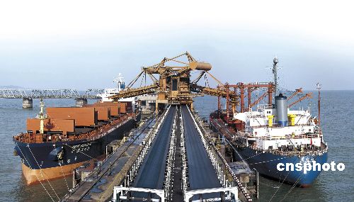 針對南方暴雪造成的電煤運力嚴重不足情況,山東日照港及時為電煤運輸開辟“綠色通道”,優(yōu)先安排到港電煤船車靠泊卸車,并與電廠、電力燃料公司溝通,幫助電廠組織貨源,加強質量管理,保證電廠配煤質量,全力支援南方抗災救災。從1月中旬到目前,累計為南方電廠運送電煤30多萬噸。圖為煤炭裝船作業(yè)場景。 中新社發(fā) 李希瑾 攝
