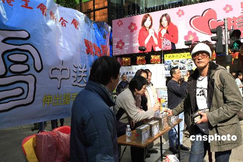 圖:香港工聯(lián)會街頭為內(nèi)地受雪災(zāi)的同胞募款