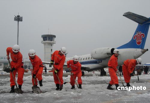 圖:貴州銅仁消防隊員機場破冰