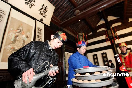 2月8日,紹興魯迅故里舉行“祝!奔漓牖顒(dòng)。當(dāng)日是農(nóng)歷正月初二,浙江紹興魯迅故里在周家老臺(tái)門模仿魯迅小說《祝福》的場(chǎng)景,從正月初一至初五每天進(jìn)行紹興傳統(tǒng)年俗“祝!眻(chǎng)景表演。紹興的年俗“祝!币螋斞感≌f而名揚(yáng)天下,浙江省將紹興魯迅故里“祝福”定為惟一的春節(jié)保護(hù)示范地。中新社發(fā) 袁云 攝