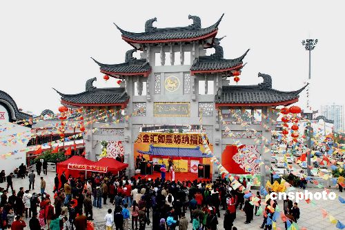 2月7日,2008南寧青秀山如意坊納福迎祥大廟會(huì)在青秀山大門(mén)前的如意坊古商城舉行。廟會(huì)以祈福南寧、祝福市民為主題,以文化展示文藝表演為依托,廟會(huì)上,民俗表演、美食、經(jīng)貿(mào)、游藝等活動(dòng),吸引了眾多游玩的人們。中新社發(fā) 彭寰 攝