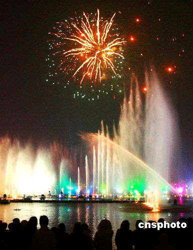 圖:蘇州金雞湖新春上演水上焰火與音樂噴泉