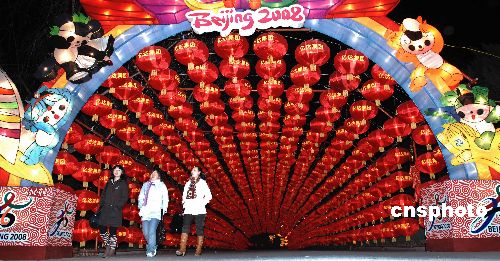 2月8日晚,眾多市民和游人紛紛來到大連勞動公園欣賞奧運主題的彩燈。以“輝煌奧運”為主題的2008迎春游園燈會2月7日至2月24日在大連勞動公園舉行。本屆迎春游園燈會由“喜迎奧運”、“祖國繁榮”、“浪漫大連”、“金鼠送福”、“童話故事”5個系列組織50余盞大型燈組組成。除設(shè)燈飾展區(qū)外,還設(shè)有民俗表演區(qū)、南北風(fēng)味小吃區(qū)、游藝游樂區(qū)、民間技藝展示區(qū)和地面焰火表演區(qū)。中新社發(fā) 劉德斌 攝